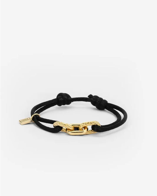 BUDDHA TO BUDDHA GEORGE MINI LEREN ARMBAND ZWART VERGULD ZILVER