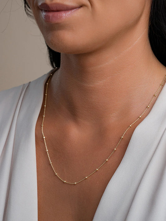 SPARKLING Necklace Faceted Ball Chain Gold Plated Silver 45CM
