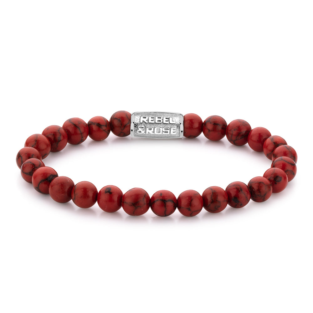 Trendy REKARMBAND uit de Rebel & Rose collectie. De armband met rode beads van 8 mm is in meerdere lengtes en kleurstellingen verkrijgbaar. De armband RED DELIGHT is voorzien van een zilverkleurige logobead. Combineer de rekarmband met de andere sieraden uit de uitgebreide collectie van Rebel & Rose.