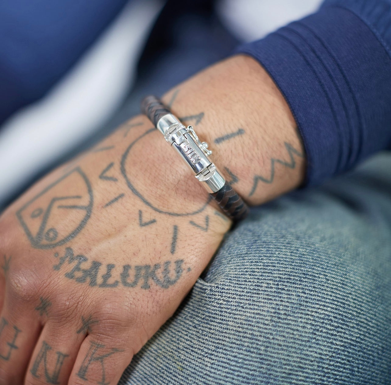 Stoere gevlochten leren armband in bruin met zwart gemixt leer voor zowel dames als heren. De leren armband sluit middels een mooi zilveren SILK slot. Deze armband is in meerdere kleuren verkrijgbaar; zwart, bruin, zwartblauw en olijf. Combineer de verschillende armbanden met elkaar voor een speelse look. De armband wordt in een mooie luxe geschenkverpakking verpakt.